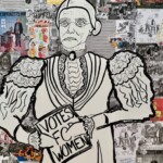 Brittany Vogel is an award-wining artist living in Hoboken, NJ. Her work focuses on expressive painting and drawing and sometimes even combines the two techniques. Her drawing concentrates on the beauty of the line. It is simple, yet powerful. The portraits endeavor to show the soul of the subject. All drawings are created so that lines are fresh and without erasure. With the centennial of suffrage approaching, Brittany wanted to honor the hard work and sacrifice of the women before her. She found that education on the subject, as well as most issues of women’s history was generally lacking. The Powerful Women series is a way for Brittany to amplify the stories, lessons, and achievements of amazing women. By placing a spotlight on extraordinary women, there will be an example by which others can follow. In Powerful Women, each figure is placed in the forefront as an expressive drawing with the background providing the context of her history. Each history is shown as a patchwork collage, often displaying issues our hero had to overcome.
