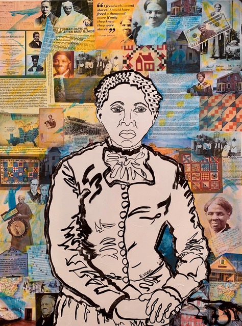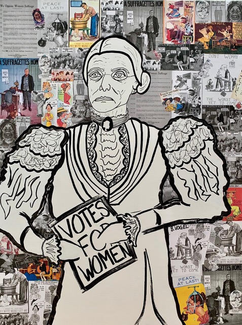 Brittany Vogel is an award-wining artist living in Hoboken, NJ. Her work focuses on expressive painting and drawing and sometimes even combines the two techniques. Her drawing concentrates on the beauty of the line. It is simple, yet powerful. The portraits endeavor to show the soul of the subject. All drawings are created so that lines are fresh and without erasure. With the centennial of suffrage approaching, Brittany wanted to honor the hard work and sacrifice of the women before her. She found that education on the subject, as well as most issues of women’s history was generally lacking. The Powerful Women series is a way for Brittany to amplify the stories, lessons, and achievements of amazing women. By placing a spotlight on extraordinary women, there will be an example by which others can follow. In Powerful Women, each figure is placed in the forefront as an expressive drawing with the background providing the context of her history. Each history is shown as a patchwork collage, often displaying issues our hero had to overcome.